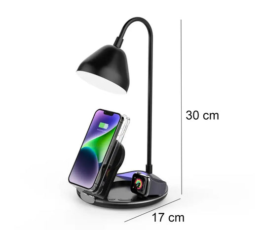 Lampada da Tavolo LED Ricaricabile 5 in 1 - Senza Fili, Caricabatterie Wireless, Dimmerabile con 3 Intensità di Luce