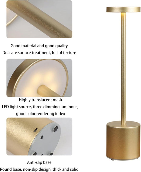 Lampada da Tavolo Ricaricabile LED Touch Sensor, 3 Livelli di Luminosità Regolabili, Design Moderno con Batteria da 1800 mAh (oro)