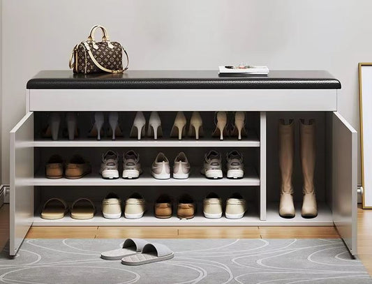 Panca scarpiera per ingresso con scaffale a 2/3 livelli con 2 porte in legno e morbido cuscino