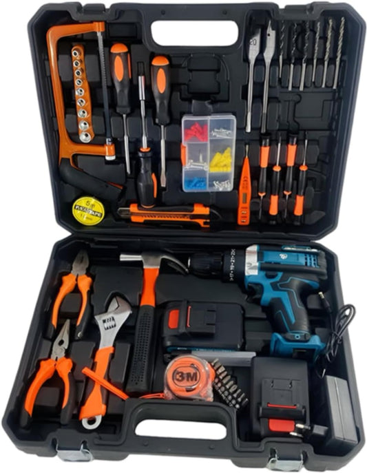 Kit Completo di Attrezzi da 100 Pezzi con Trapano Avvitatore a Batteria Ricaricabile 2 Batterie da 88V Incluse, Set per Uso Domestico e Professionale "