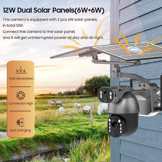 Telecamera Solare a Doppio Obiettivo F33 - 10x Zoom, 8K HD, IP65, Wireless per Esterni