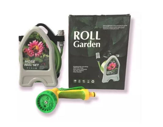 Kit di Giardinaggio con Tubo Rinforzato e Pistola di Irrigazione – 10m con Carrello di Stoccaggio