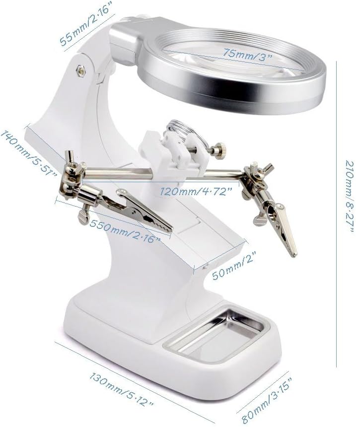 Questa lente d'ingrandimento da scrivania con luce LED è progettata per offrire un ingrandimento preciso e dettagliato, ideale per attività come lettura, riparazioni e qualsiasi operazione che richieda un'osservazione ravvicinata. Realizzata con lente ottica resistente ai graffi, offre una visione chiara e nitida. La luce LED integrata consente di avere una visibilità ottimale, mentre il design pieghevole e la possibilità di alimentazione tramite USB la rendono comoda da usare e facile da riporre.