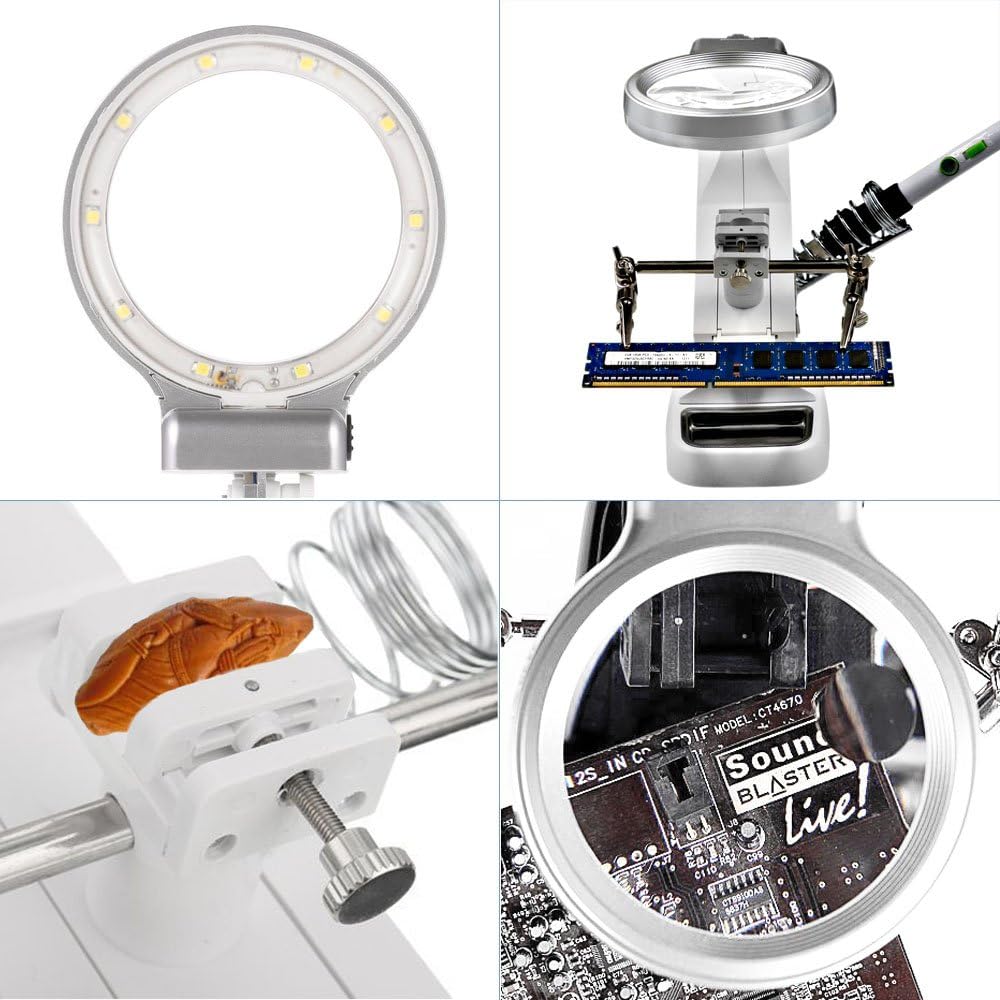 Lente d'Ingrandimento da Scrivania con Luce LED, Supporto Pieghevole e Alimentazione USB